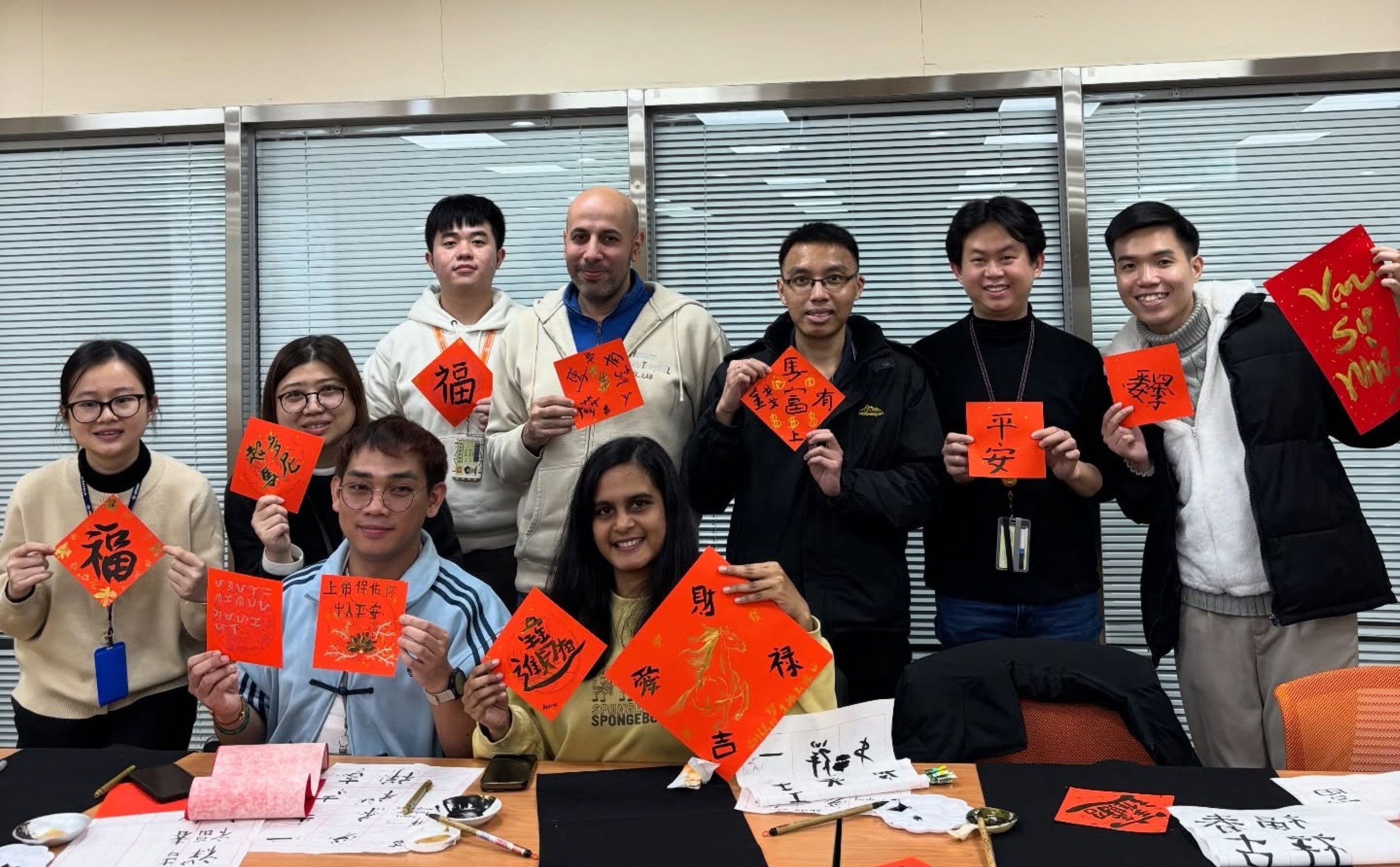 International students and international staff also joined the event today, experiencing the beauty of Chinese culture through calligraphy and sharing the joyful atmosphere of the Lunar New Year together.