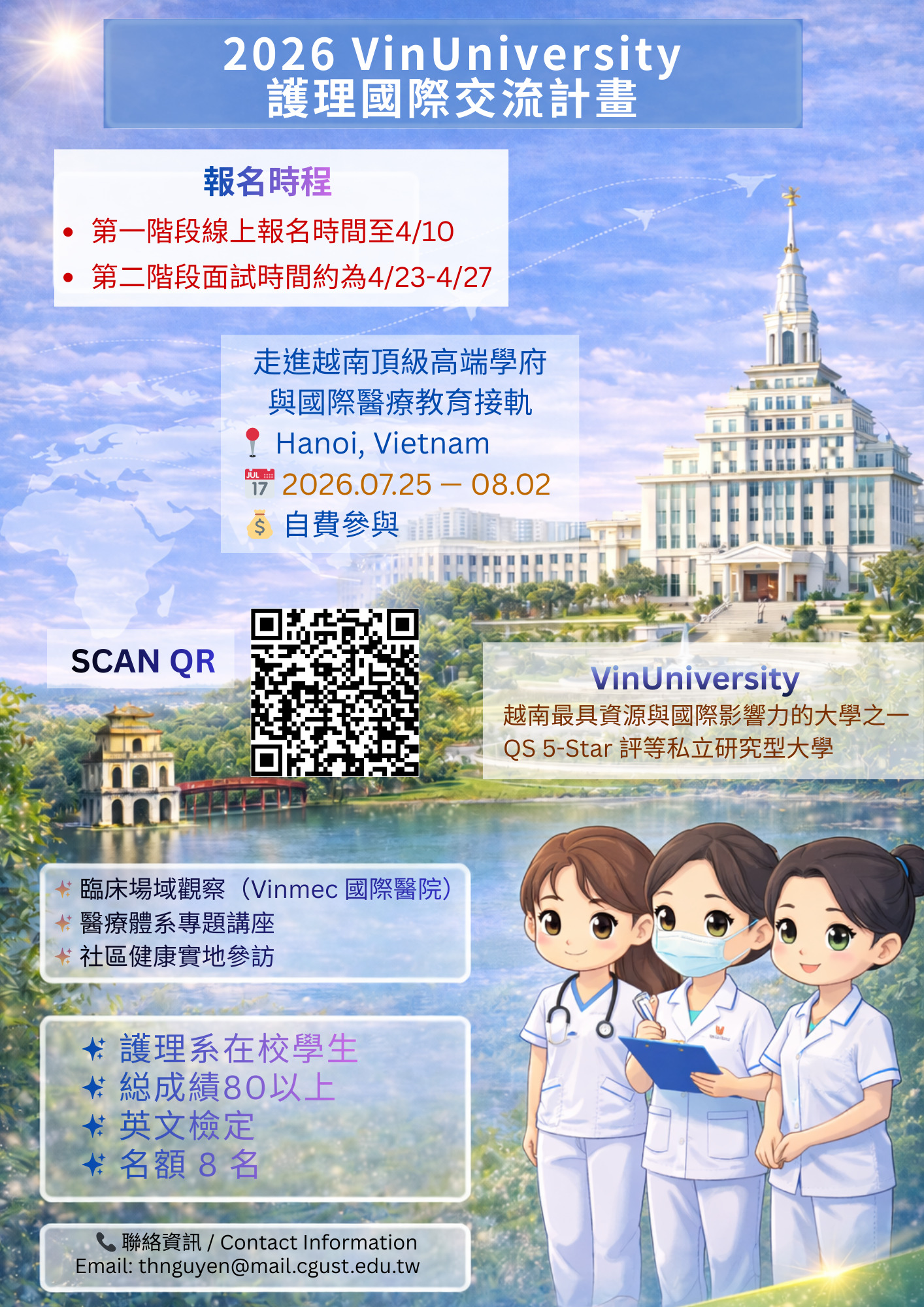 相關連結:2026 VinUniversity 護理國際交流計畫報名連結